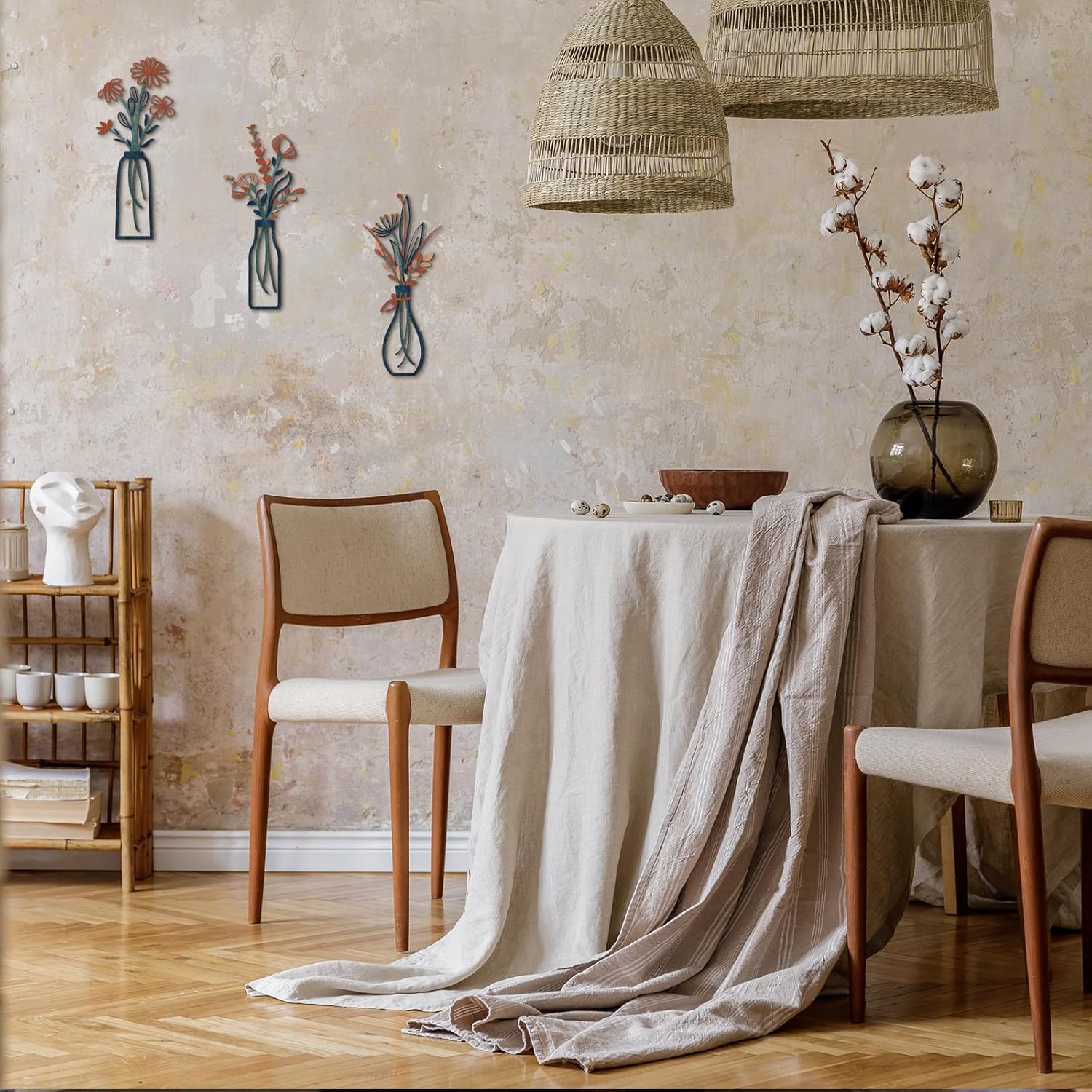 Each piece features a unique design, showcasing delicate petals and intricate detailing that will captivate your guests and become a conversation starter. Whether you choose to display them in your living room, bathroom, bedroom, dining room, or any other area, these metal flowers will effortlessly complement your existing decor and create a cozy, inviting atmosphere.