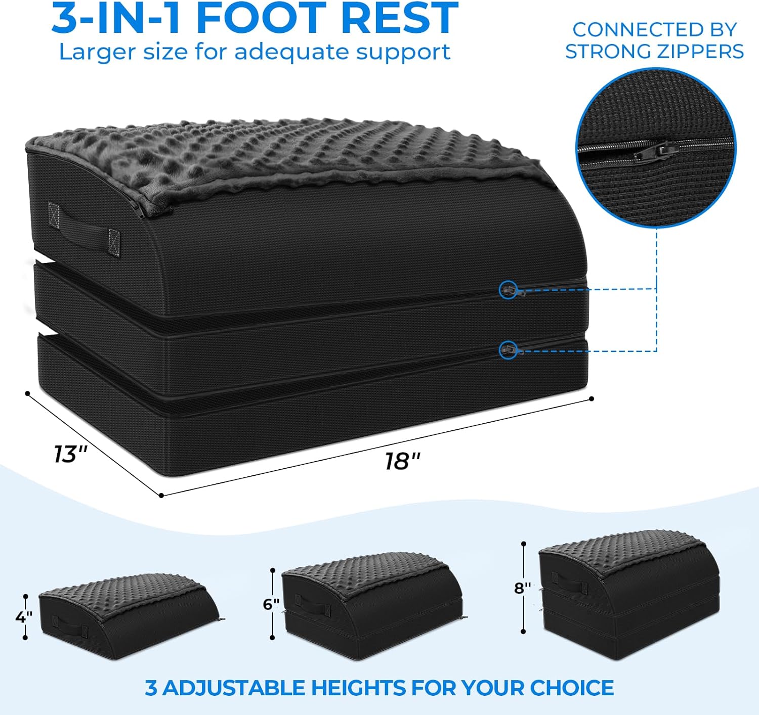 Foot Rest Under Desk for Office Use, Gel Memory Foam Foot Stool with 3 Adjustable Heights and Feet Warm Pocket for Back, Hip, Legs Discomfort Relief, Ergonomic Footrest for Office Chair & Gaming Chair
